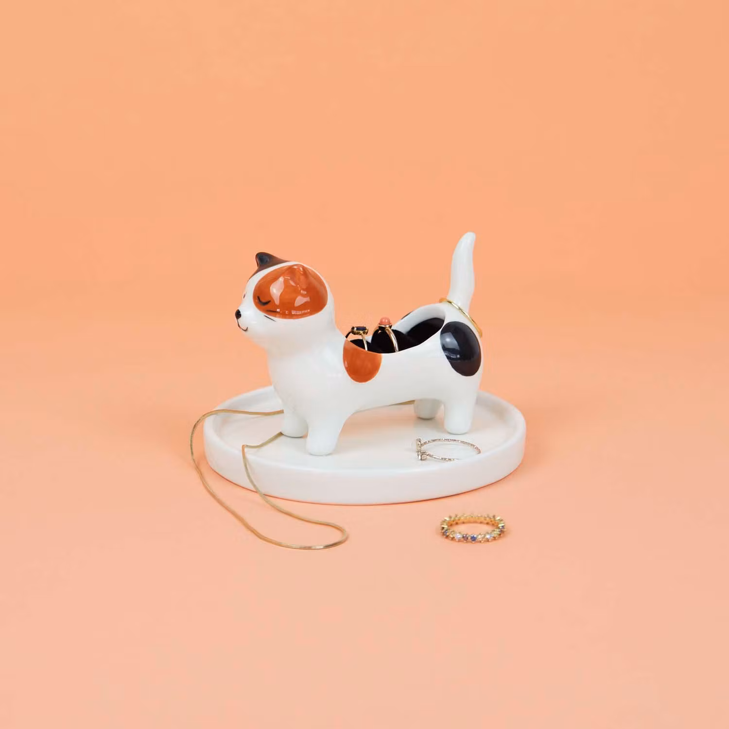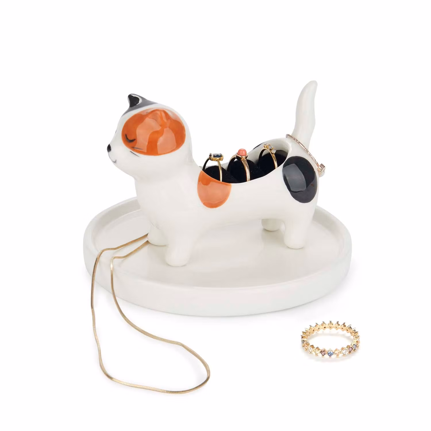 Supergullig ringhållare i form av en katt. Perfekt liten kompis som håller dina smycken sällskap om natten.