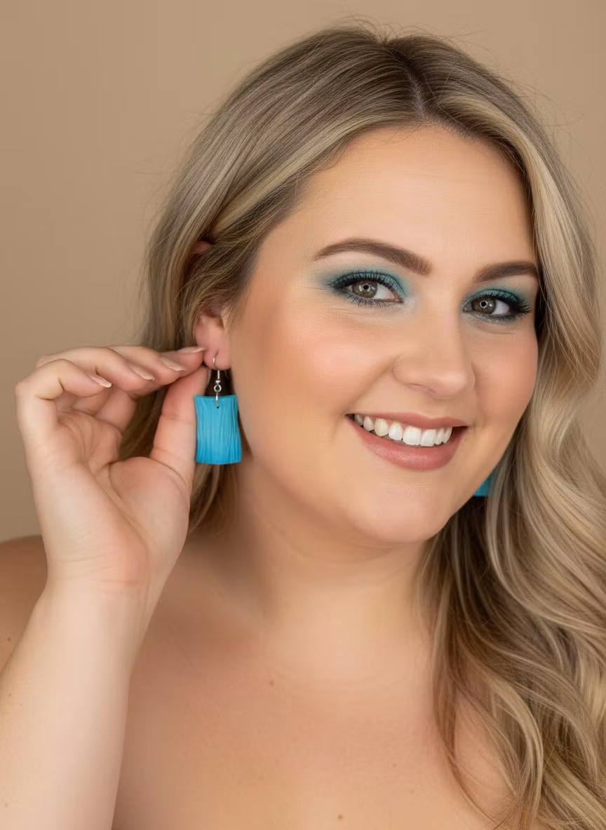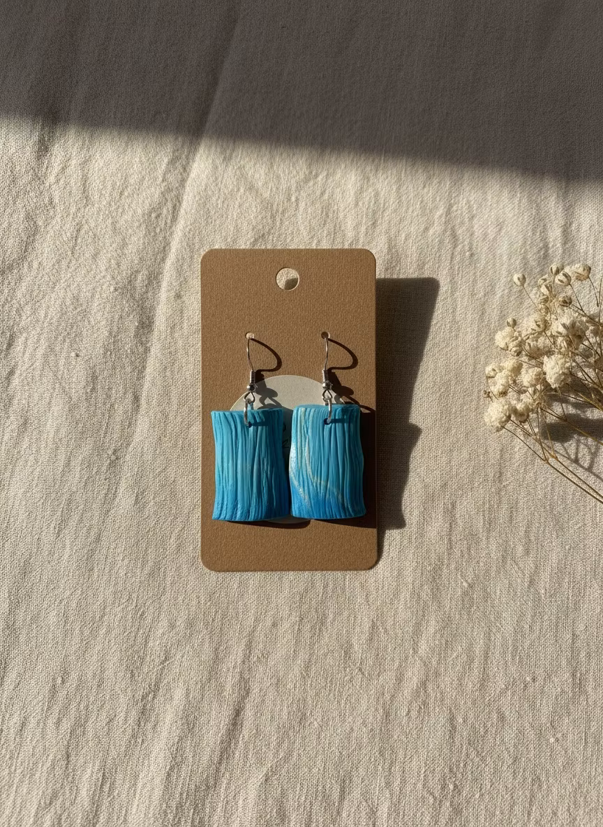 Örhängen som för tankarna till härligt medelhavsvatten och varmare breddgrader. Välvd form med strukturmönster i turkost och blått i olika nyanser.
