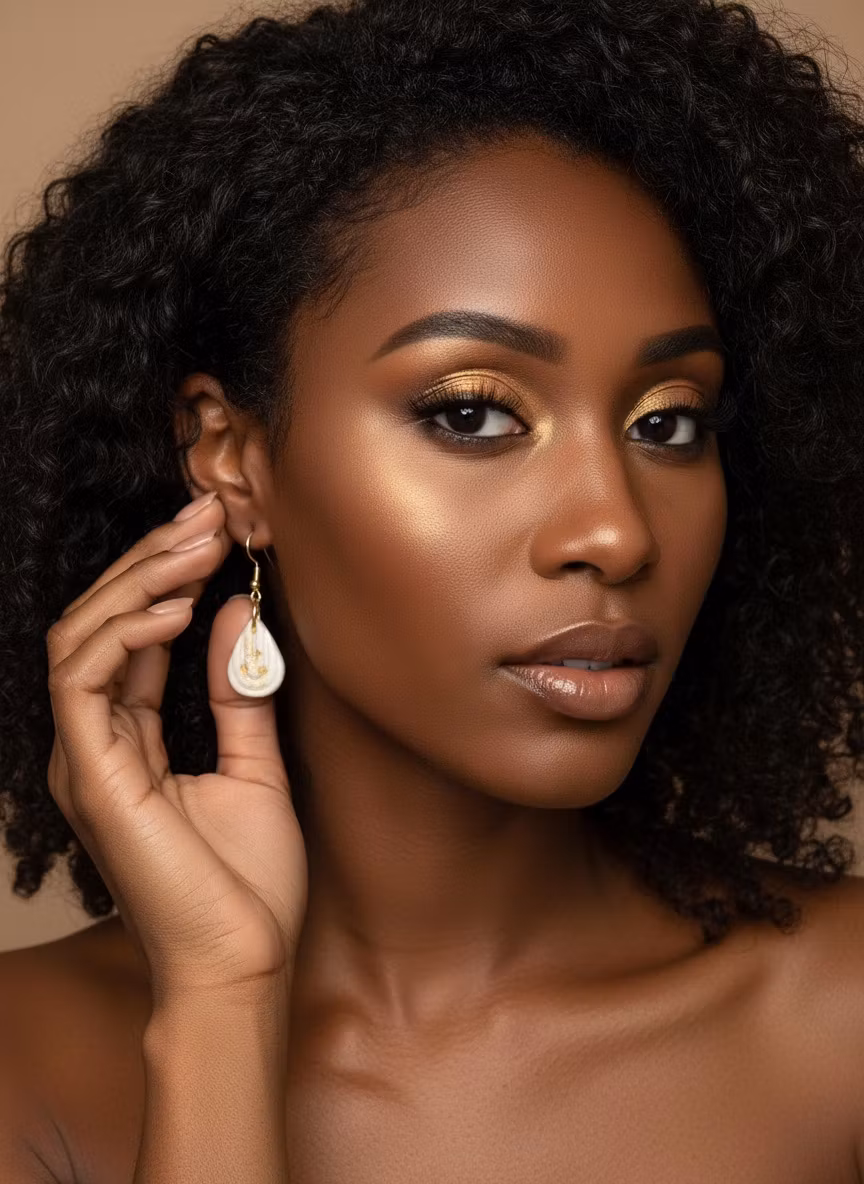 Litet elegant droppformat hänge, when less is more! Guldfoliedetaljer. Örhängesmodell: krok.
