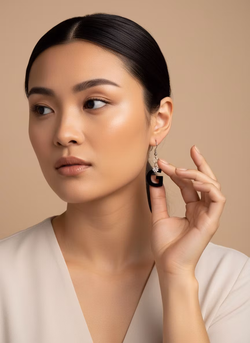 Elegant bokstavs-örhänge i svart plexiplast. Ger dig möjligheten att bära något mer personligt - bär t.e.x. dina barns, husdjurs eller dina egna bokstäver!