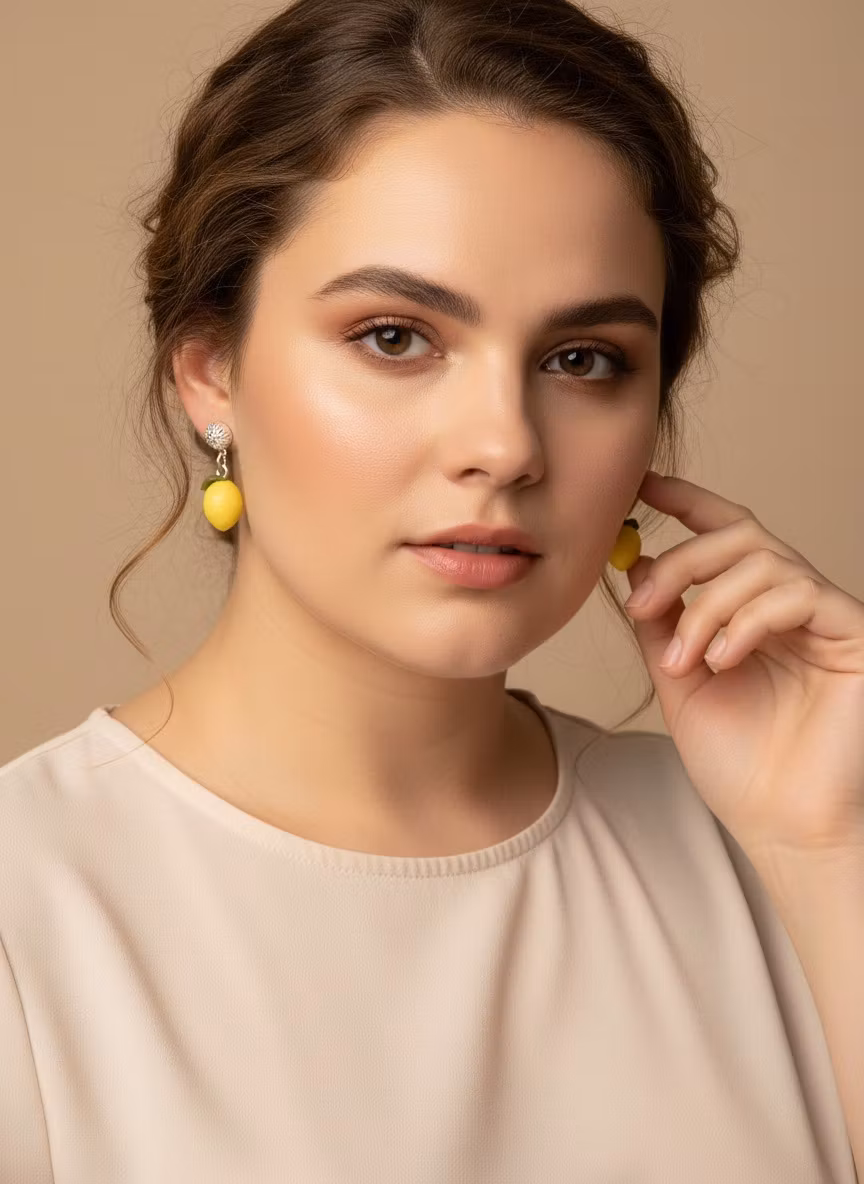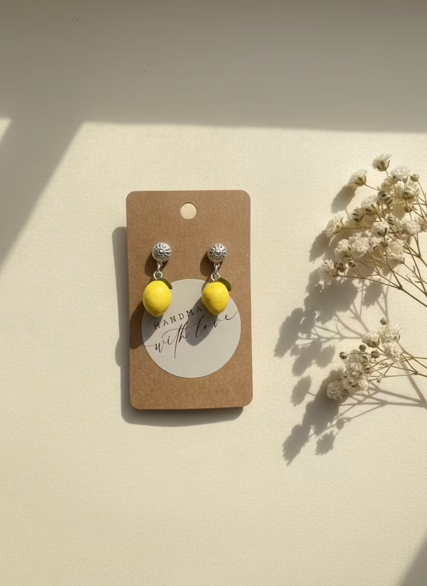 Söta minicitroner med blad. Små och delikata! Örhängesmodell: stift.