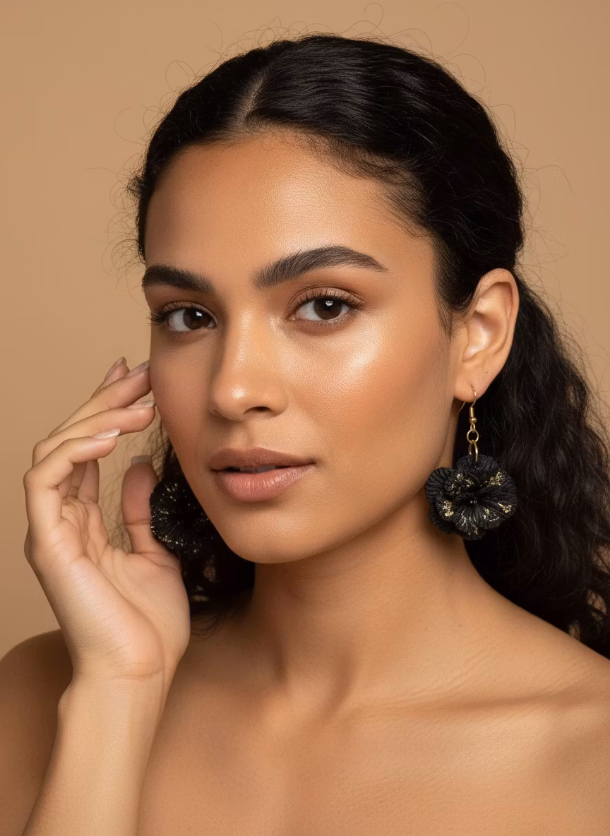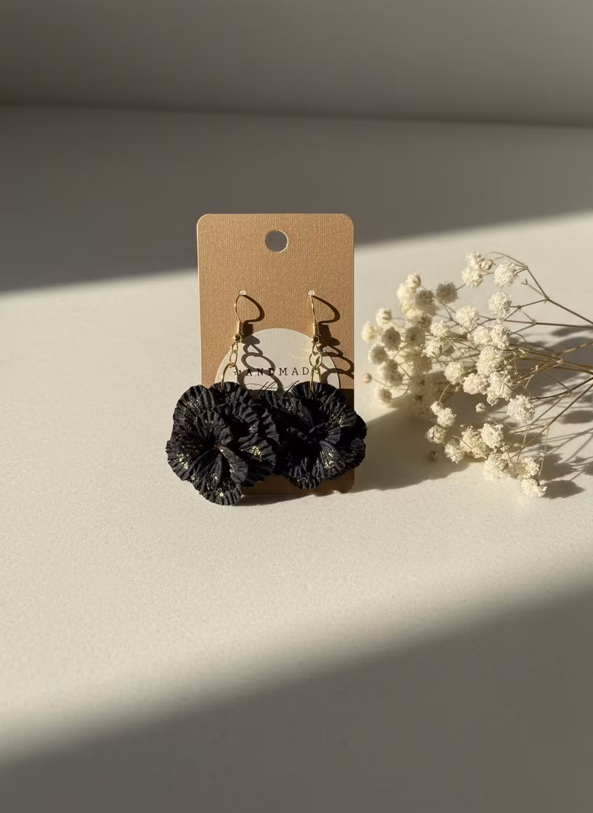 Ett stort elegant örhänge med attityd och stil. Vacker blomma i svart med guldfärgade detaljer inuti. Örhängesmodell: krok.